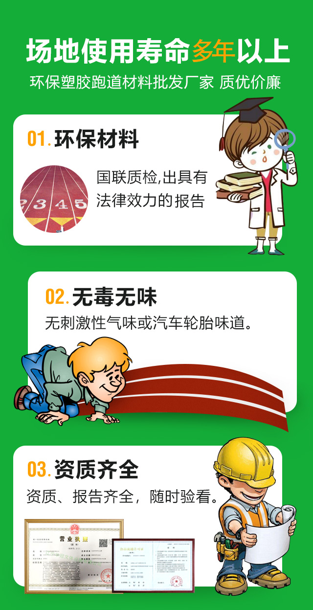 作为辽宁大型塑胶跑道、丙烯酸球场、塑胶球场、硅PU球场厂家,公司始终坚持一“致力于体育场地建设,创造舒适的运动空间”为宗旨,本着“质量、服务为根本,诚信经营为基础,共赢互利为目标”的经营方针竭诚为社会广大客户服务。